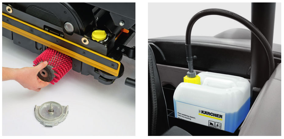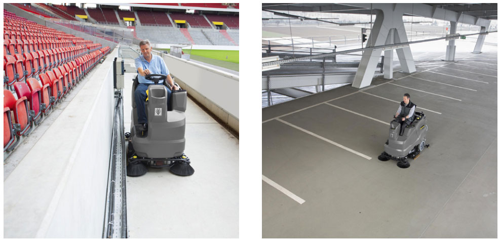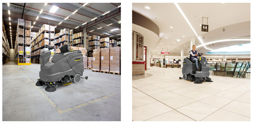 karcher的站立式洗地吸干机使洗地工作变得愉快和轻松,人性化的站立式设计使操 作者不会感到疲劳。